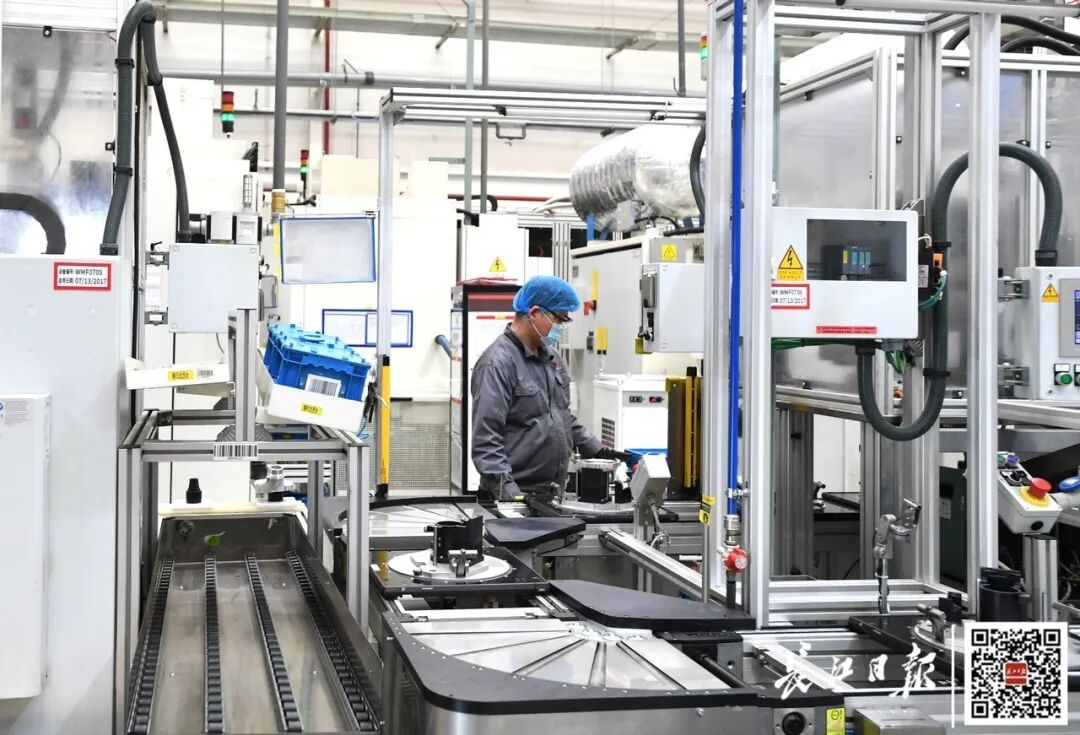 霍尼韦尔涡轮增压技术(武汉)有限公司,工人在生产线上工作 长江日报记者高勇摄