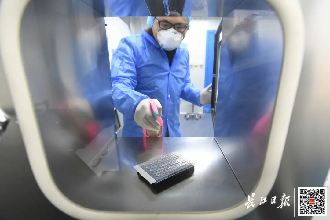 2月6日,“火眼”实验室正式投入运行,检测人员将自动化核酸提取后的样本转到核酸扩增区,进行核酸检测分析 长江日报记者周超 通讯员霍世杰 摄